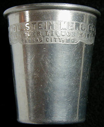 “For sale is an ultra-rare, 100% authentic pre-Prohibition aluminum advertising shot glass from the famous Kansas City mail-order liquor dealer:
