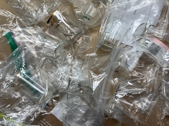 I had to wait until the auction closed to talk about this one, mainly to see if anyone had any interest in bidding on it. Sadly no-one did, because I had high hopes of finding a good home for the dozen or so glasses that have been murdered by USPS over the years. I haven’t had the heart to throw them away, which is sad, sad, very sad. But who knows, flattened and crushed could be the next big thing in the pre-pro collecting world. You read it here first!