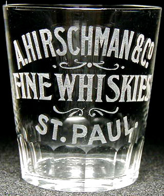 A.HIRSCHMAN & Co (arched) / (curlicue design) / FINE WHISKIES (arched) / (curlicue design) / ST. PAUL. (reverse arched) |
