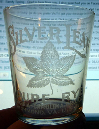 The Silver Leaf is rare and in good condition (is that rim damage? Not sure.) and it's from Richmond, VA., so we have to factor in a VA premium. Maybe $80? I have one of these glasses also - I found it at an antique show in PA for $12.00. Paul Van Vactor had a sales table a short distance away, which made the find all the more triumphant because we would have seen it listing under a stilz auction header for sure had I not bagged it. Life. Is. Good.