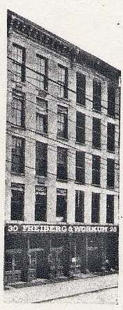 The following is adapted from a photocopy of an 11-page booklet issued by Freiberg & Workum in celebration of its 50th anniversary in 1905. From The Snyder Collection.