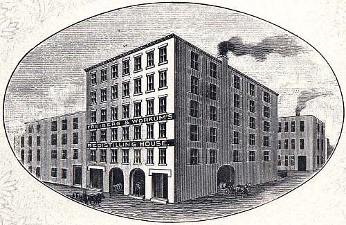 | In 1866 the building surrounded by Baum, Produce, and Kirby Alleys in Cincinnati, was purchased, and used as a bonded "Class B" warehouse, until bonded warehouses of this class were abolished by the Government. It was then transformed into a redistilling and rectifying house, and is being so used today. |