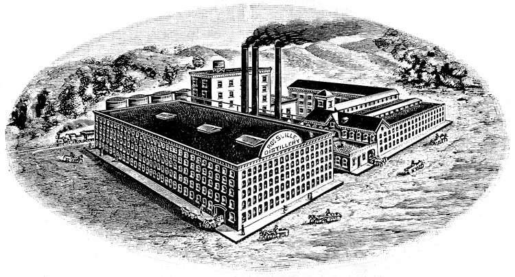 1847: The distillery was founded on Turkey Hill. 1875: The plant was acquired by James Walsh & Co., whose main office was in Cincinnati. 1906:The plant was still being operated by James Walsh & Co. with a daily mashing capacity of of 5,000 bushels of grain, storage space for 60,000 barrel in its waregouses, four steel grain elevators holding 200,000 bushels, and two slop dryers that held 5,000 bushels of feed. 1932: Fire destroyed much of the plant. 1933: In September of this year, the distillery was acquired by Joseph E Seagram & Sons. In 2001, the distillery was acquired by Pernod Ricard, and passed to Lawrenceburg Distillers Indiana, LLC. in 2007. In 2011, MGP became owners and have continued production until present day (2015). Information from Mida's Compendium (1905), and The Whiskey Portal (July 7, 2015). |