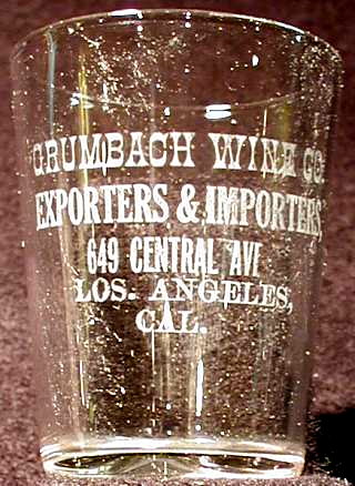 | Glass Category: | Liquor advertising | | Glass Type: | Thin-walled shot | | Label Type: | Usual white-etched label | | Dimensions: | *2-7/16" x 1-13/16" x 1-7/16" | | Edmonson: | OASG, p. 88, entry #8 | | State: | CA | | City: | Los Angeles | | | | | | Notes: | |