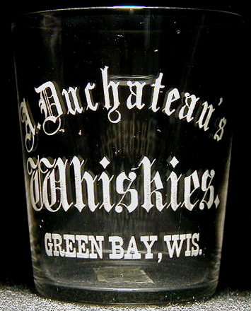 About 1870 with his brother (I Duchateau), Abelard established a liquor dealership in Green Bay, calling it Duchateau & Brother. It was located at the corner of Main and Washington Streets in the heart of the city’s commercial district. The Duchateaus were not only liquor dealers but also rectifiers, that is, blending and compounding whiskeys to achieve a specific taste. They packaged their products in glass with an embossed logo on the front. The company’s flagship brand was “Old Beauford Rye.”