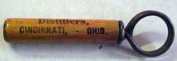 A Clough-type wire corkscrew with wooden sleeve from Sig. & Sol. H. Freiberg of Cincinnati, OH. It measures 3-1/2" in length. The cover is printed with brand and company information: