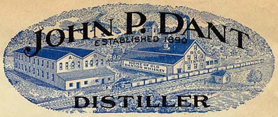 "John P Dant & Edmund D Carter, Wholesale Liquors. Exclusive agents for the J W Dant distillery, Dant, KY." (1892). A letterhead dated 1916 (see below) claims ownership of RD #174, 5th District of Kentucky.