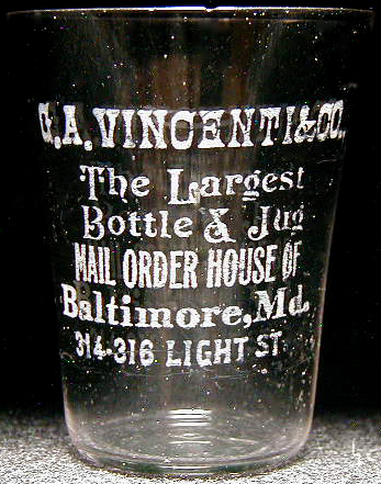 G.A. VINCENTI&CO., / The Largest / Bottle & Jug / MAIL ORDER HOUSE OF / Baltimore,Md. / 314-316 LIGHT ST., |
