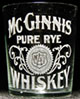 McGINNIS (arched) / PURE RYE / (frosted seal with curlicue designs to either side. At center of the seal within a tsp circle outline is the outline of a tsp shield bearing a tsp monogram: AMcGCo) / WHISKEY (letters decrease in height toward the center of the line).