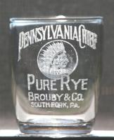 But -- on the final sweep of the room --I ran across a choice little barrel glass. It was a Pennsylvania Chief from Broudy & Co. of South Fork, PA. I jumped on it and checked the rim - sweet! But there was no price on it and the owner had already left! Well damn. I ruefully replaced it on the table and made a mental note to get back early the next day to pick it up. |