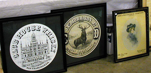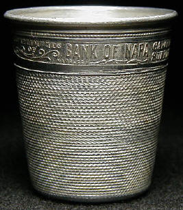 ![]() Pre-pro whiskey signage for sale for a premium price (above), and a Bank of Napa giveaway (left). |